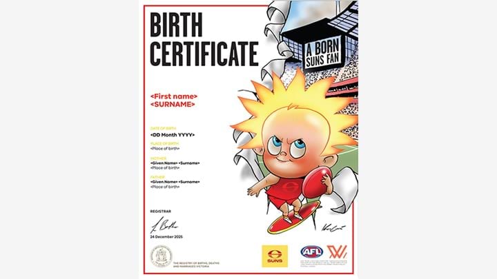 Select from a range of AFL commemorative birth certificates.